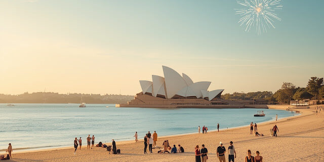 New Year’s celebrations in Australia are typically informal and outdoor-oriented. Major cities are known for large-scale fireworks displays, often set against natural harbours and coastlines. Social gatherings frequently take place on beaches, in parks or at barbecues, reflecting a lifestyle that values openness, sociability and contact with nature rather than formality.